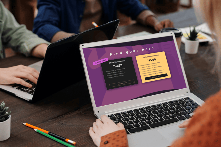 Landing page for an indie game
