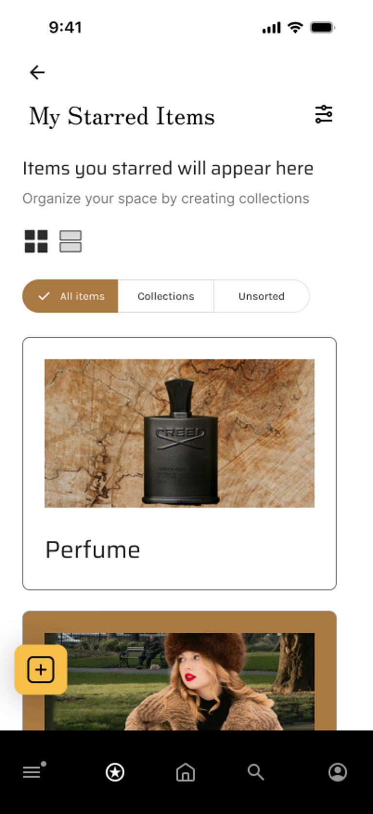 To tackle these issues, we added an arrow on each screen so the users could go back to the previous page. On the Collections page, I added 3 sorting options: all items, collections, and unsorted, so users could switch between collections and items not belonging to any collection. Finally, we changed the colour of the '+' icon on the Collections page so it stood out and could be noticed easily.
