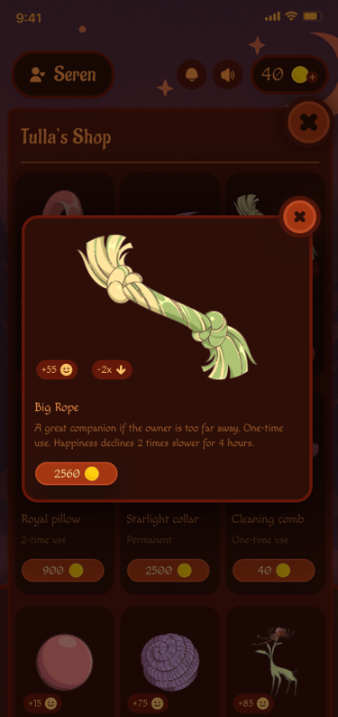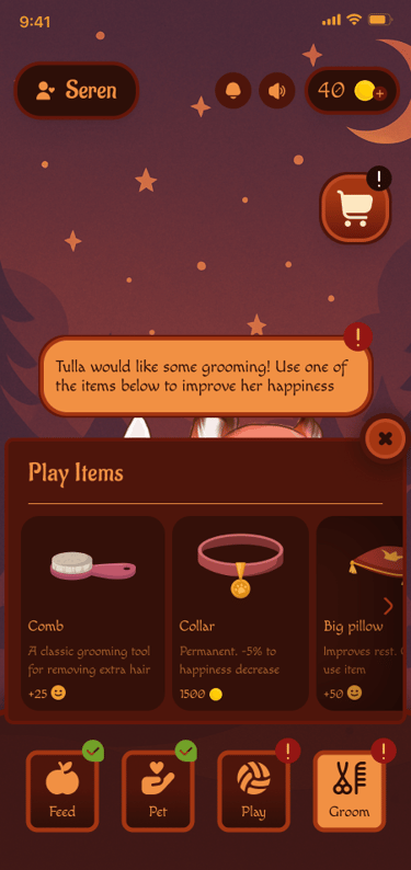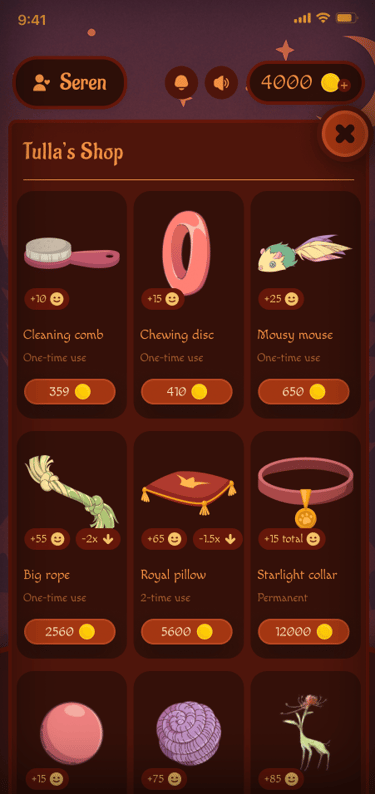 Pet Shop - an opportunity to spend coins received through focusing and completing tasks